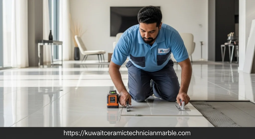 ما يميز معلم الرخام الخاص بنا أنه يجمع بين المهارة اليدوية واستخدام أحدث الأدوات. فهو يستخدم أجهزة قص ليزرية تضمن دقة الأبعاد وزوايا مثالية. كما يعتمد على مواد لاصقة عالية الجودة تمنع أي فراغات تحت البلاط. في مشروع بعمارة في الفروانية واجهنا مشكلة بعدم استواء الأرضية، لكن الفني عالجها بدقة قبل التركيب ليتفادى أي مشاكل مستقبلية.